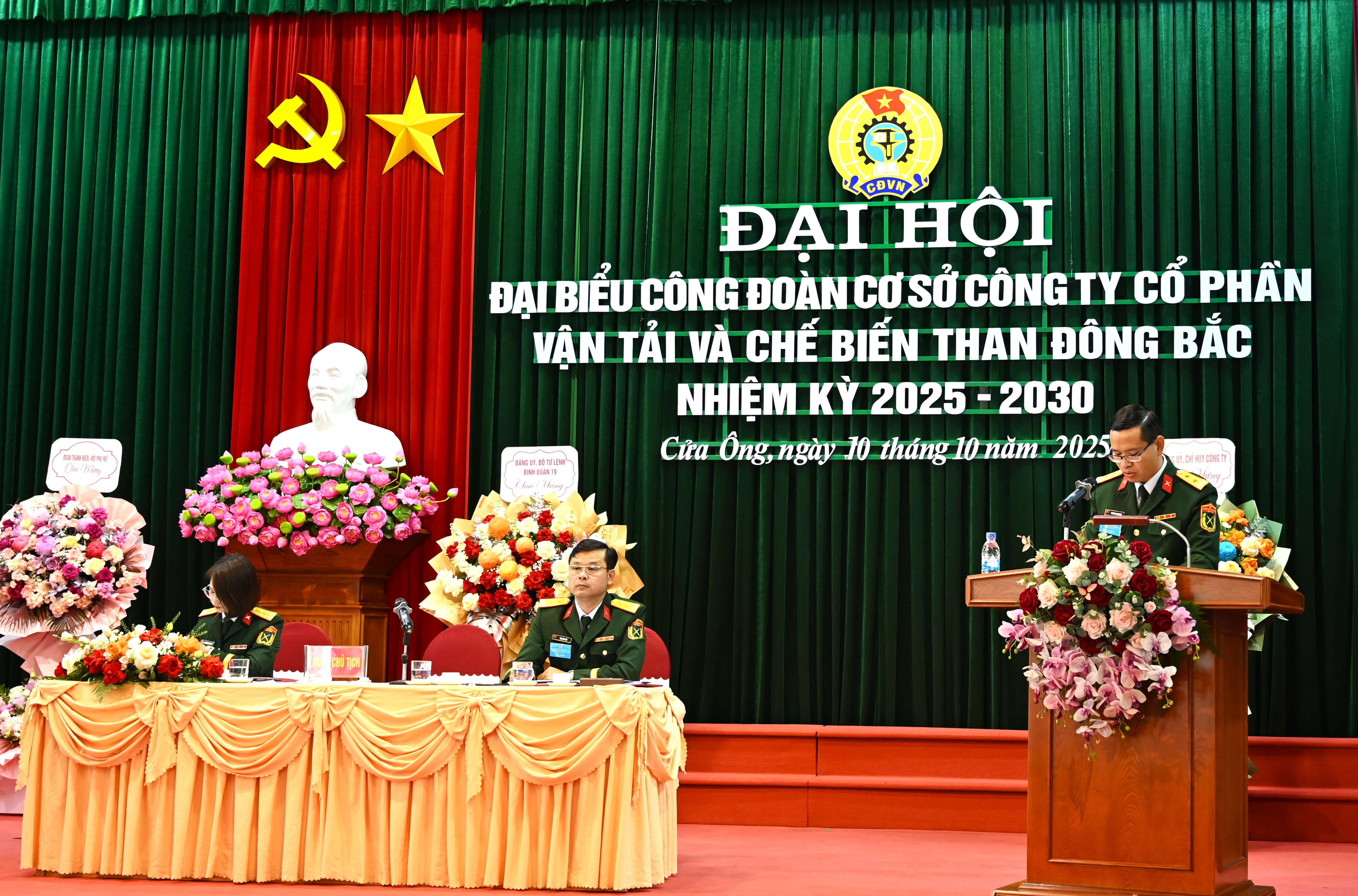 Sáng ngày 10/10/2025, tại văn phòng Công ty cổ phần VT&CB than Đông Bắc, Công đoàn cơ sở Công ty long trọng tổ chức Đại hội đại biểu nhiệm kỳ 2025 - 2030. Dự và chỉ đạo Đại hội có đồng chí Đại tá Phương Kim Mừng - Đảng ủy viên Đảng ủy Binh đoàn 19, Phó bí thư Đảng ủy, Giám đốc Công ty; Đồng chí Thượng tá Trịnh Văn Thanh, Bí thư Đảng ủy - Chủ tịch Hội đồng quản trị Công ty; Đồng chí Trung tá Vũ Văn Sinh - Trợ lý Phòng Chính trị Binh đoàn 19; Dự Đại hội còn có các đồng chí trong Đảng ủy, Chỉ huy Công ty, đại diện các chi bộ trực thuộc, Trưởng các Phòng, Phân xưởng, Đội, Chi nhánh; đại diện các tổ chức quần chúng, Đoàn Thanh niên, Hội phụ nữ Công ty, cùng 120 đại biểu đại diện cho 475 cán bộ, đoàn viên Công đoàn cơ sở Công ty về dự.