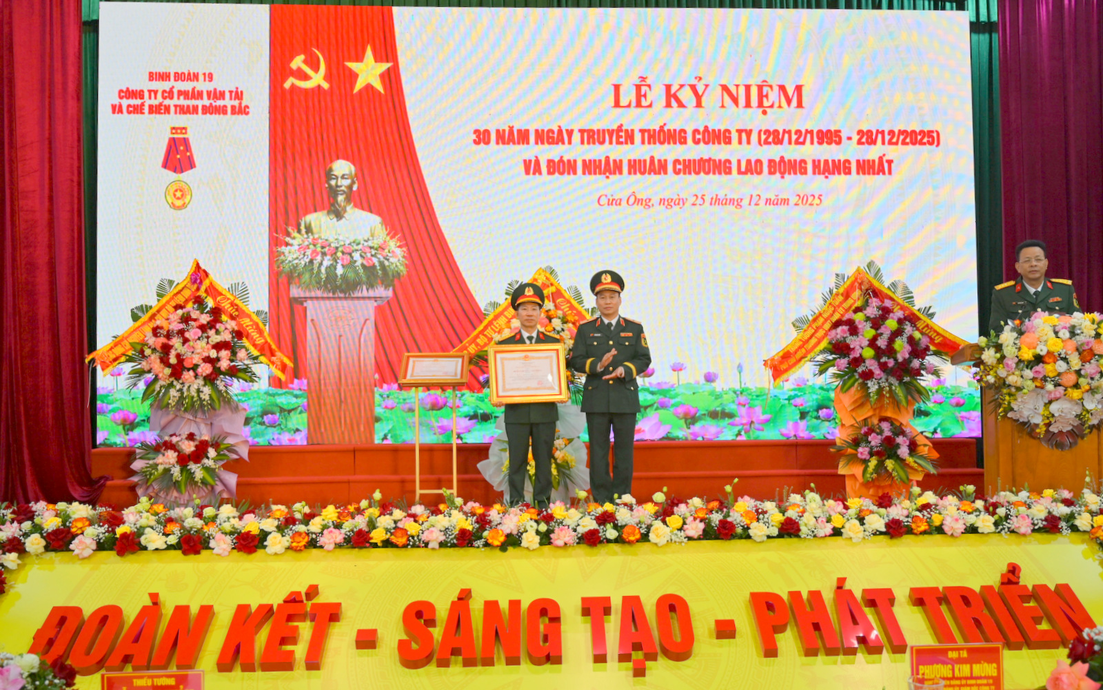 Trong không khí hào hùng, phấn khởi của những ngày lịch sử: Kỷ niệm 81 năm Ngày thành lập Quân đội nhân dân Việt nam; 36 năm Ngày hội Quốc phòng toàn dân; 31 năm Ngày truyền thống Binh đoàn 19; đặc biệt là các hoạt động thi đua hướng tới chào mừng Đại hội Đại biểu toàn quốc lần thứ 14 của Đảng. Ngày 25/12/2025, tại Hội trường Văn phòng Công ty, khu 6b, phường Cửa Ông, tỉnh Quảng Ninh, Công ty cổ phần VT&CB than Đông Bắc long trọng tổ chức Lễ kỷ niệm 30 năm Ngày truyền thống (28/12/1995 - 28/12/2025) và đón nhận Huân chương Lao động hạng Nhất.