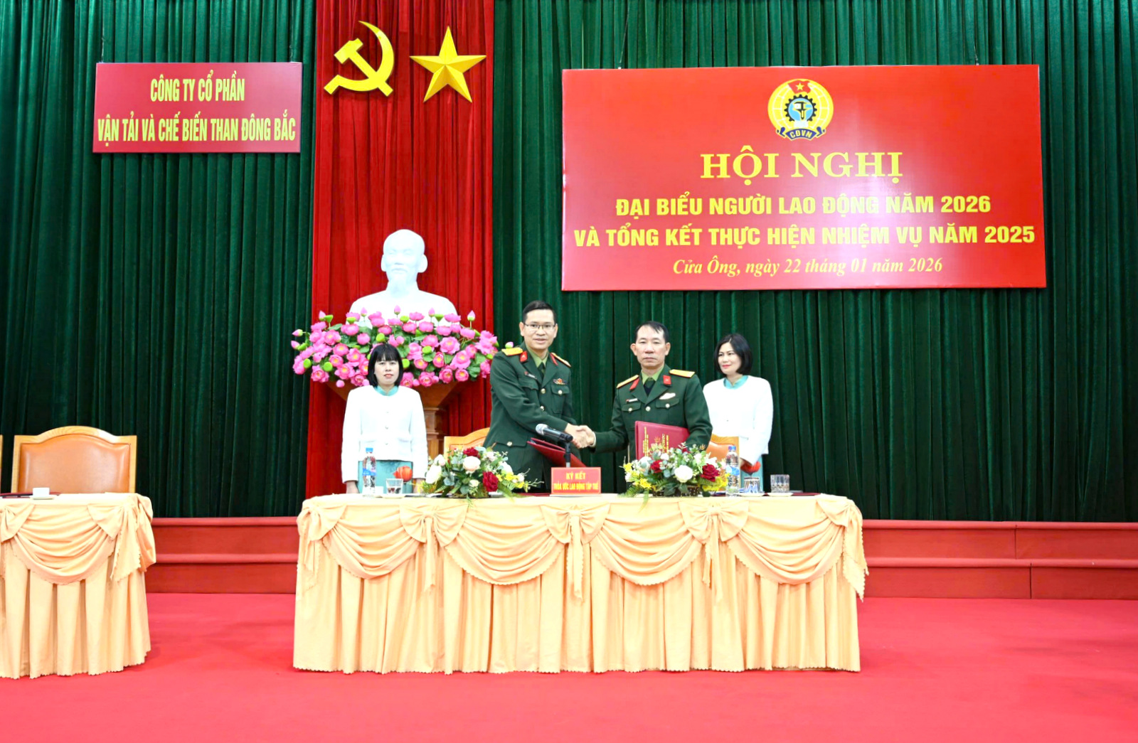 Sáng ngày 22/01/2026, Công ty cổ phần Vận tải và chế biến than Đông Bắc long trọng tổ chức Hội nghị đại biểu Người lao động năm 2026 và Tổng kết thực hiện nhiệm vụ năm 2025; với sự tham dự của120 đại biểu đại diện cho 468 đồng chícán bộ,công nhân, lao động trong toàn Công ty.