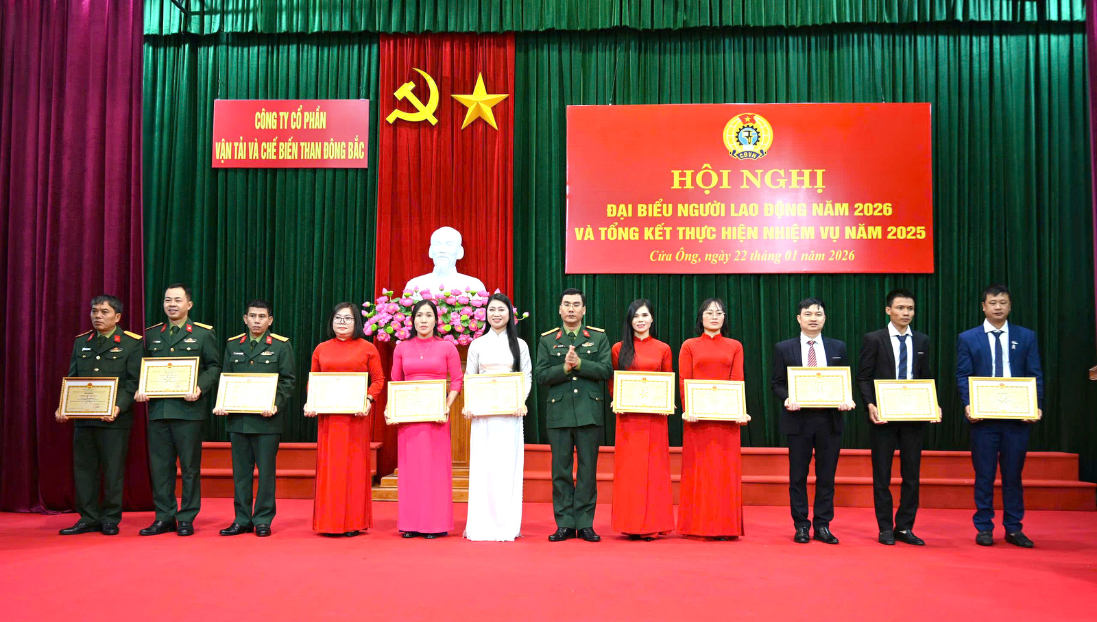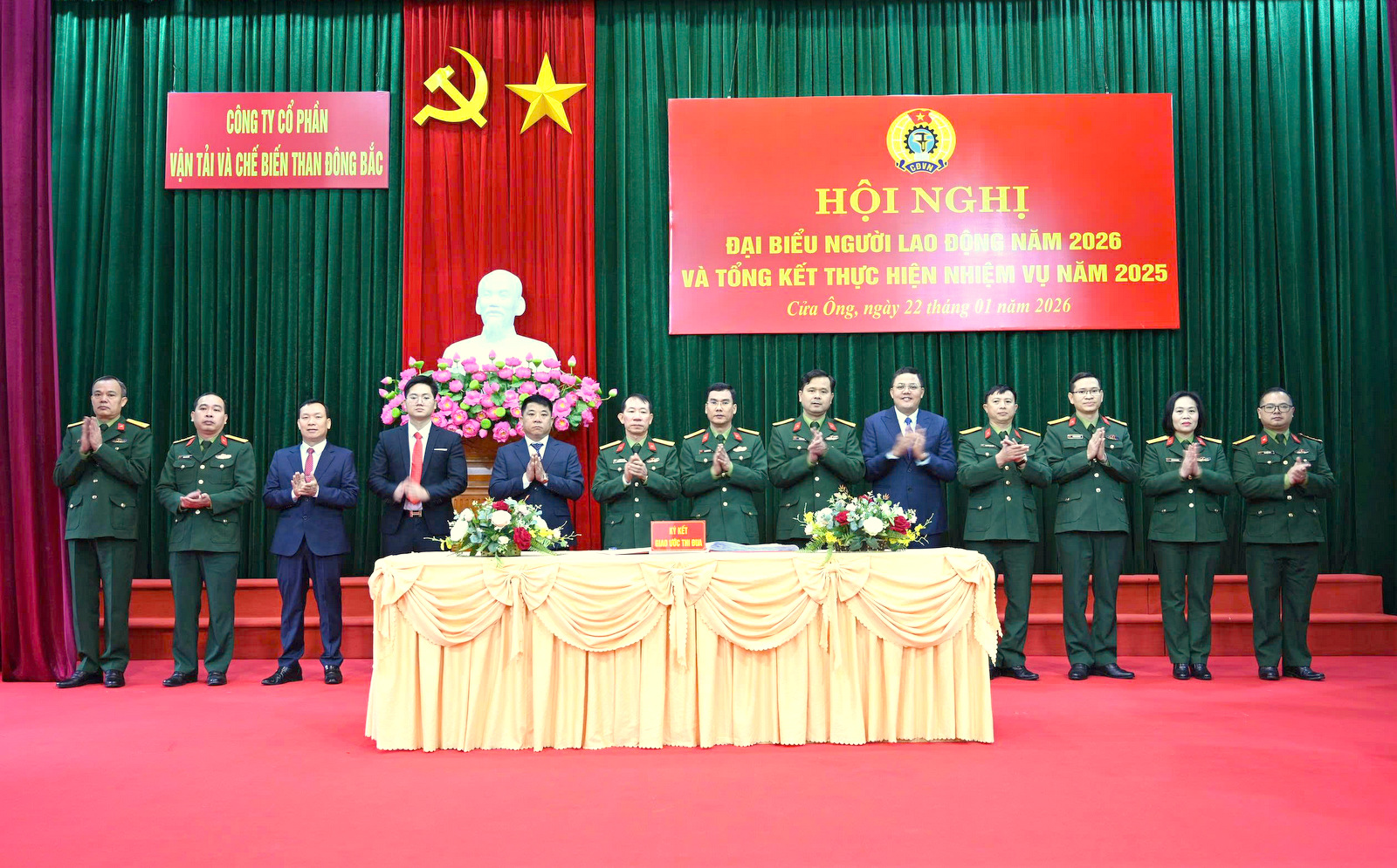 Hội nghị đại biểu Người lao động năm 2026 và Tổng kết thực hiện nhiệm vụ năm 2025 Công ty cổ phần Vận tải và chế biến than Đông Bắc đã thành công tốt đẹp, hoàn thành nội dung chương trình theo đúng kế hoạch đề ra. Cán bộ, công nhân, lao động tin tưởng, phấn khởi, quyết tâm hoàn thành tốt các chỉ tiêu, nhiệm vụ, kế hoạch sản xuất kinh doanh năm 2026, đảm bảo an toàn tuyệt đối về mọi mặt./.
