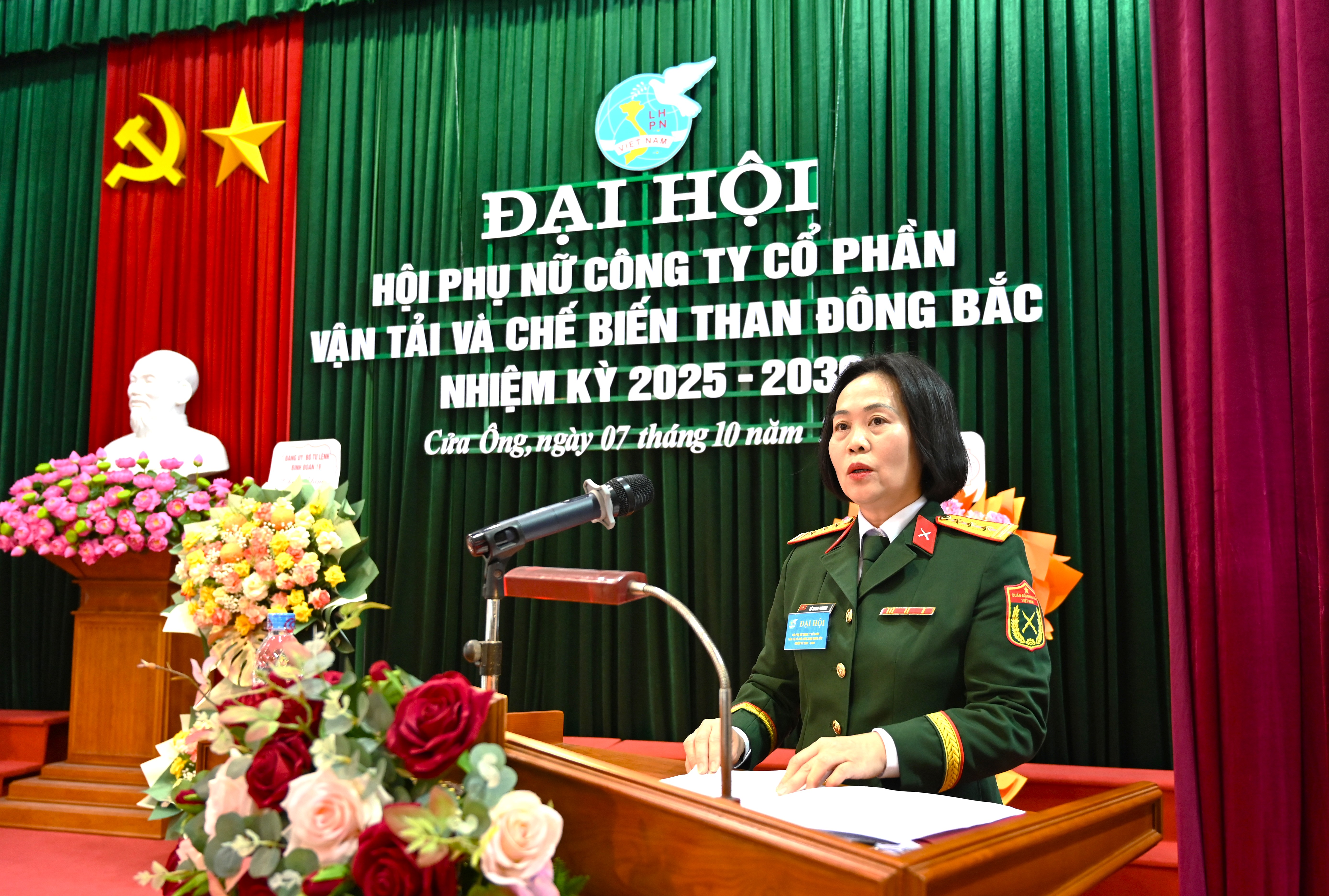 Phát biểu chỉ đạo, đồng chí Thượng tá Trịnh Văn Thanh, Bí thư Đảng ủy - Chủ tịch HĐQT Công ty đã biểu dương và ghi nhận những kết quả đạt được của Hội Phụ nữ Công ty trong giai đoạn 2021-2025; Đồng chí cũng nhấn mạnh nhiệm kỳ 2025-2030 Ban chấp hành Hội phụ nữ cần tiếp tục nâng cao chất lượng hoạt động công tác Hội và phong trào phụ nữ tại đơn vị, xây dựng đội ngũ cán bộ, hội viên “Bản lĩnh, trí tuệ, kỷ cương, nhân ái”, xứng danh “Bộ đội Cụ Hồ” trong kỷ nguyên mới, xây dựng tổ chức Hội phụ nữ vững mạnh xuất sắc, góp phần xây dựng Đảng bộ trong sạch vững mạnh, đơn vị vững mạnh toàn diện “mẫu mực, tiêu biểu”.
